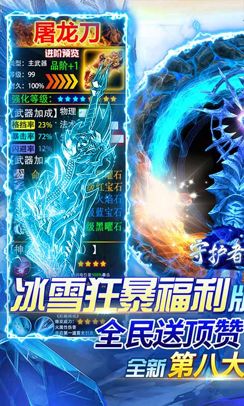 守护者传说(新冰雪无限灵符)真白嫖!无限爆灵符!游戏画面清晰精致打击感实足。完美还原冰雪,原汁原味复刻传奇核心玩法,多人BOSS夺宝,血战沙城PK,还原经典传奇场景。本服无任何绑定限制,自由交易,上线免费送自动挂机、 自动拾取、自动分解,一切全靠爆游戏中获得的灵符,装备,材料,打怪均能掉落!!!